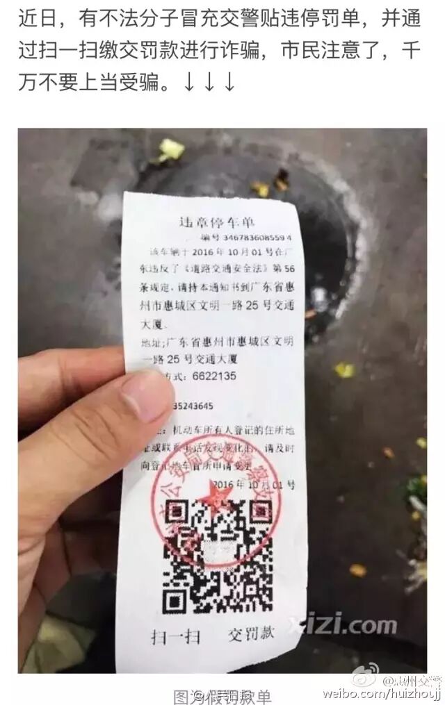 又一新型诈骗方式来了:不法分子冒充交警贴“违停罚单”,并要求车主通过扫一扫“缴纳罚款”,实则钱转账进了骗子的口袋。
