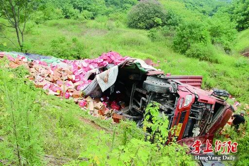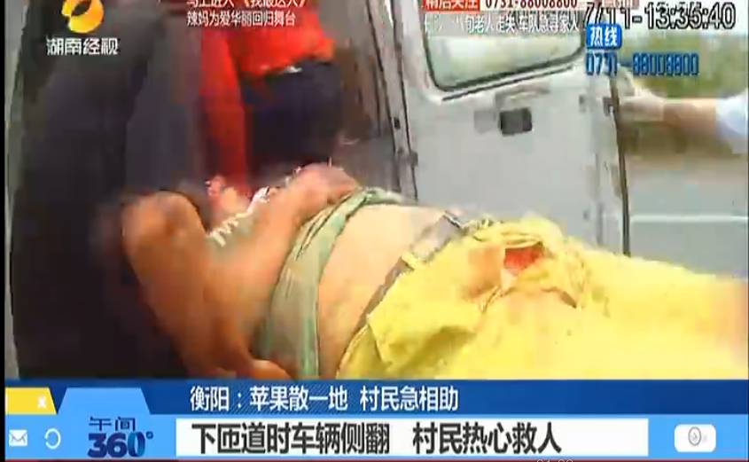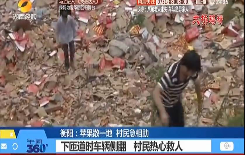 7月11日中午,一辆满载苹果的重型半挂牵引车在京港澳高速转往泉南高速攸县方向匝道时,突然侧翻在左侧护坡下,车辆严重受损,苹果散落一地,两名驾驶员受伤。当地村民闻讯后,立即报警并前往现场救援。