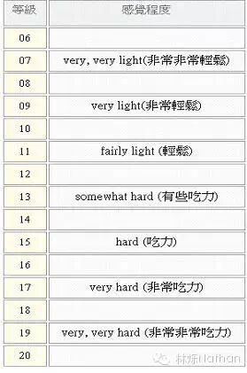 训练的强度简单的分类(大致上是这样,但可能不同的书上或是协会建议的数字会略有不同):